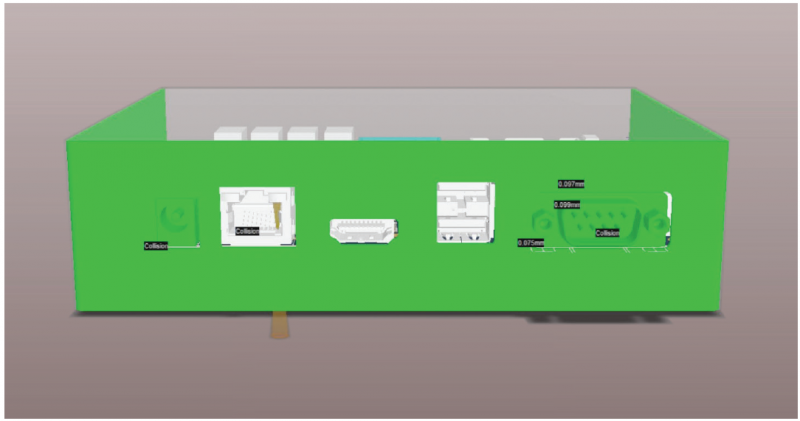 3D clearance check visualization showing can be performed as part of enclosure design in MCAD software or in the electrical space as part of component placement.